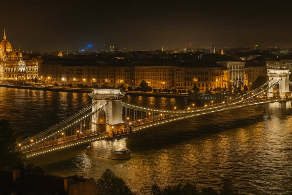 El Puente de las Cadenas, inaugurado en 1849, fue el primer puente permanente que unió Buda y Pest. Este puente colgante, custodiado por sus icónicos leones de piedra, representa uno de los símbolos más reconocibles de la ciudad. Diseñado por William Tierney Clark, el puente no solo es una obra maestra de la ingeniería del siglo XIX, sino también un punto privilegiado para contemplar tanto el Parlamento como el Castillo de Buda. Al anochecer, su iluminación lo convierte en uno de los lugares más fotogénicos de Budapest.