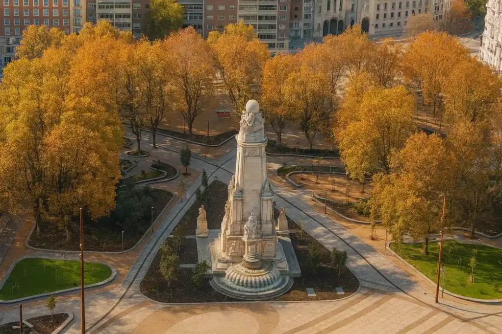 La Plaza de España, ubicada en el corazón de Madrid, es un emblemático espacio que combina historia, cultura y un vibrante ambiente urbano. Este amplio recinto, que se extiende a lo largo de unos 36.900 metros cuadrados, es conocido por su imponente monumento a Miguel de Cervantes, el célebre autor de «Don Quijote de la Mancha».