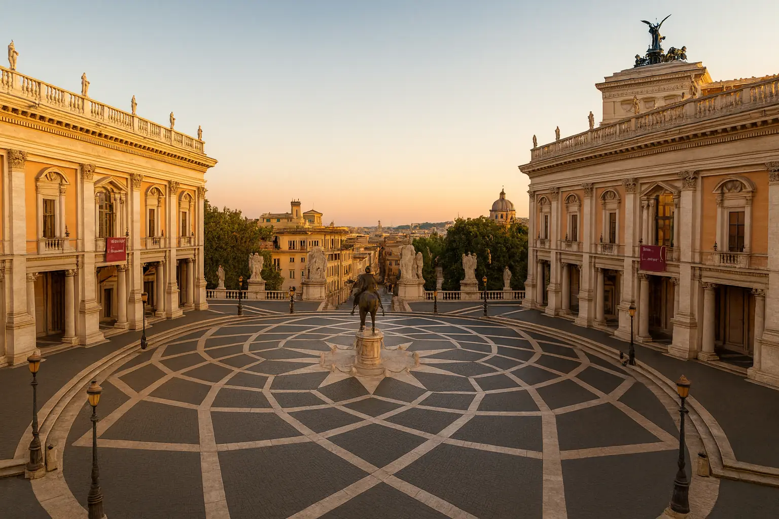 La Plaza del Campidoglio o Plaza del Capitolio se ubica en lo más alto de la Colina Capitolina, siendo la primera plaza que rompió con el estilo clásico en Roma. Fue el Papa Pablo III Farnese quien encargó a Miguel Ángel el diseño de una plaza con estilo modernista, orientándola hacia la Basílica de San Pedro.