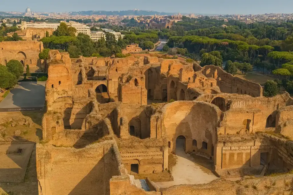 Las Termas de Caracalla se terminaron de construir en el 216 con el emperador Caracalla (Marco Aurelio Antonio Basiano), convirtiéndose en uno de los mayores termas de su época. En la actualidad apenas quedan muros de ladrillo y bóvedas, pero se puede apreciar gran parte del esplendor que atesoraba este lugar.