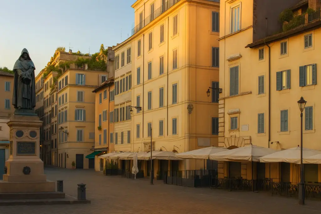 Sin embargo, no todo eran buenas prácticas en esta plaza, ya que también se utilizaba para ejecuciones públicas. Hay una estatua de Giordano Bruno que fue quemado en 1600 acusado de herejía, levantando el monumento en su honor en 1889.