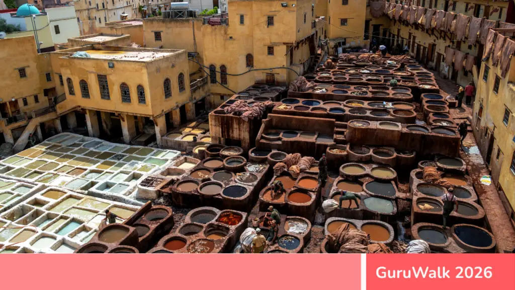 Fez alberga la medina más grande del mundo árabe y la Universidad Al Quaraouiyine, fundada en 859 d.C. (la más antigua en funcionamiento continuo). Sumergirse en sus 9.000 callejuelas—donde trabajadores de curtiembres tiñen pieles con métodos ancestrales y astrónomos del Mediterráneo estudian los cielos—es retroceder milenios mientras tus sentidos se aturden de color, olor y sonido.