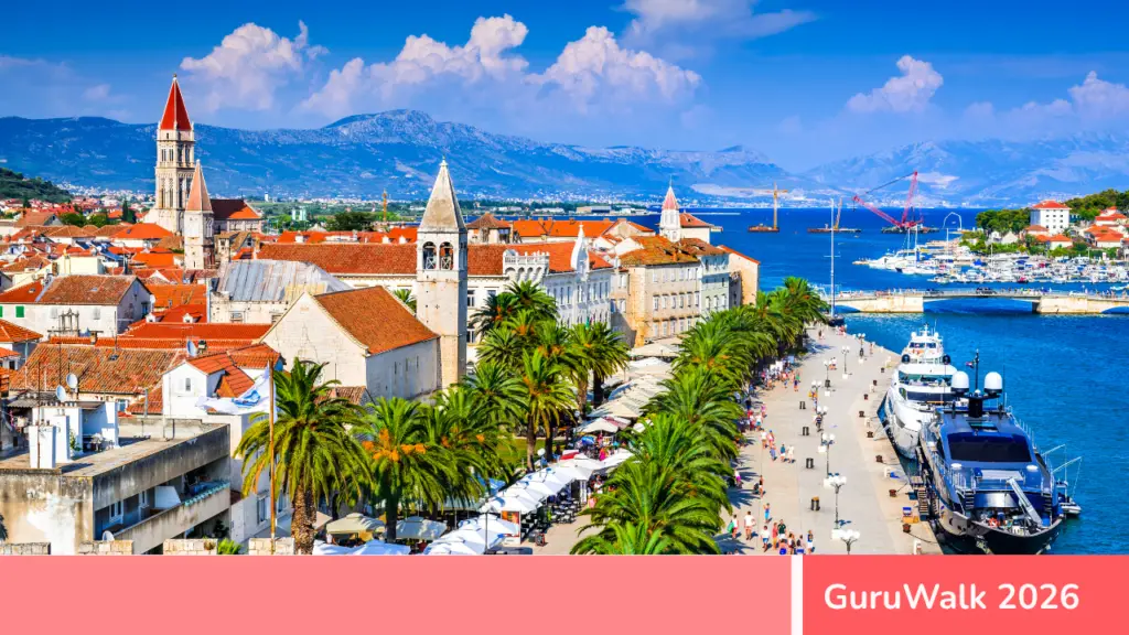 Split revela el secreto mejor guardado de Croacia: un Palacio Romano del siglo III convertido en ciudad viva. El Palacio de Diocleciano, donde el emperador se retiró hace 1.700 años, ahora alberga tiendas, cafés y apartamentos que viven dentro de sus muros de piedra. Caminar por la costa dálmata desde aquí ofrece playas de grava y puestas de sol color fuego sobre el Adriático.