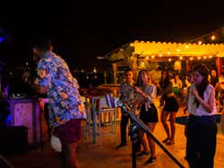 Open bar sunset party in the bay sharing with natives